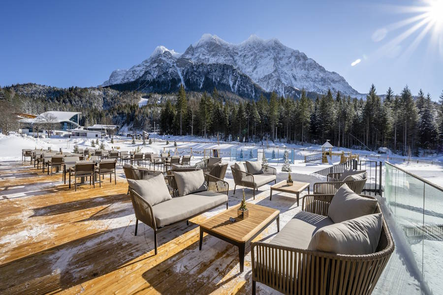 Zwischen Panorama und Pistenspaß: Das Vier-Sterne-Superior Resort begeistert mit alpinem Charme und Wohlfühlatmosphäre © Zugspitz Resort