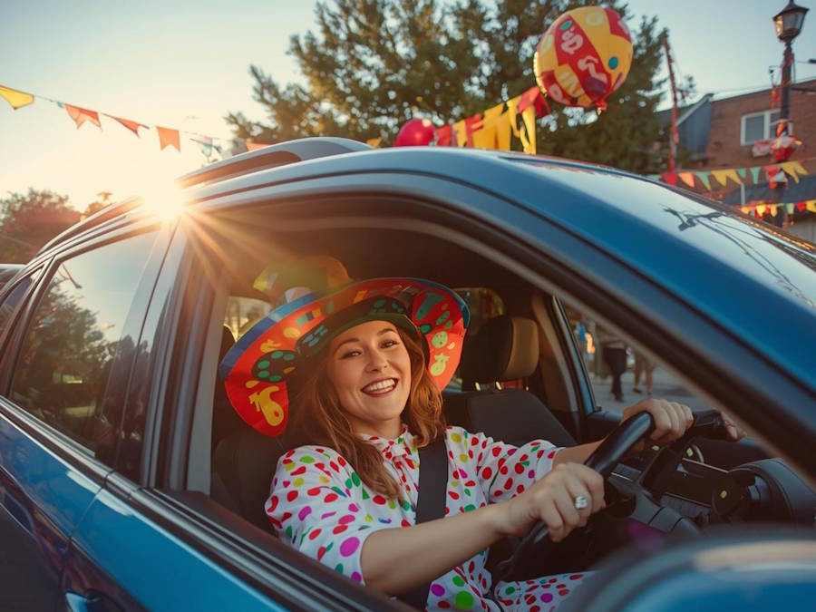Mit dem Auto kostümiert zur Feier