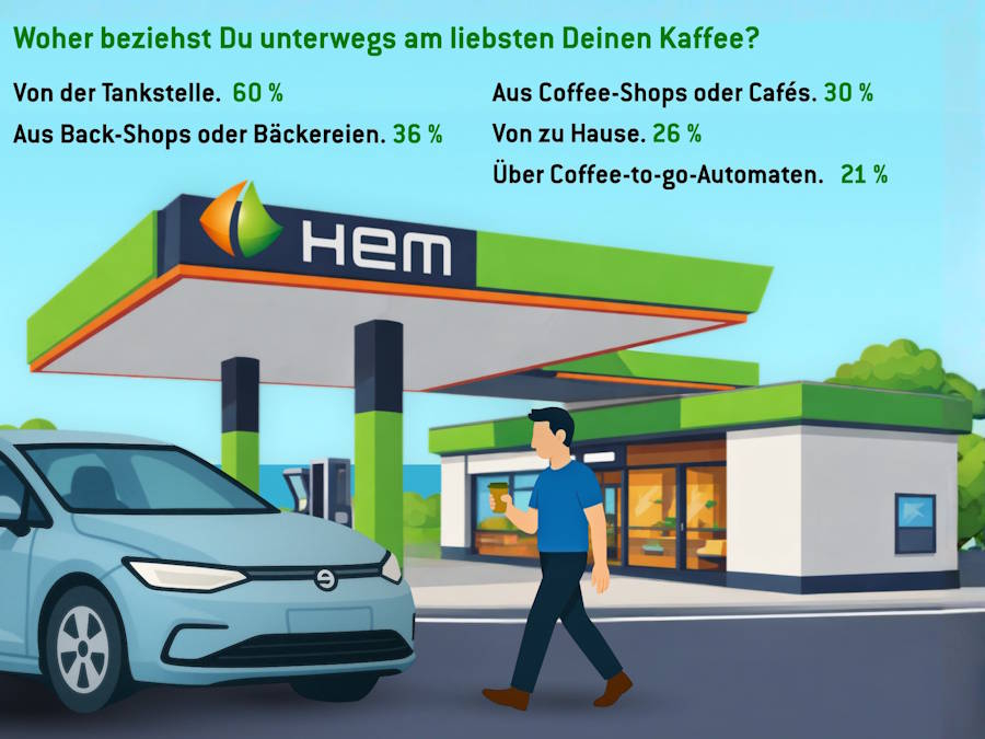 [1] Basierend auf einer Marktforschungsumfrage zum Thema „Kaffee-Kultur unterwegs“, die von der Tankstellenkette HEM im Januar 2026 mit 2.122 Personen über 18 Jahren durchgeführt wurde.