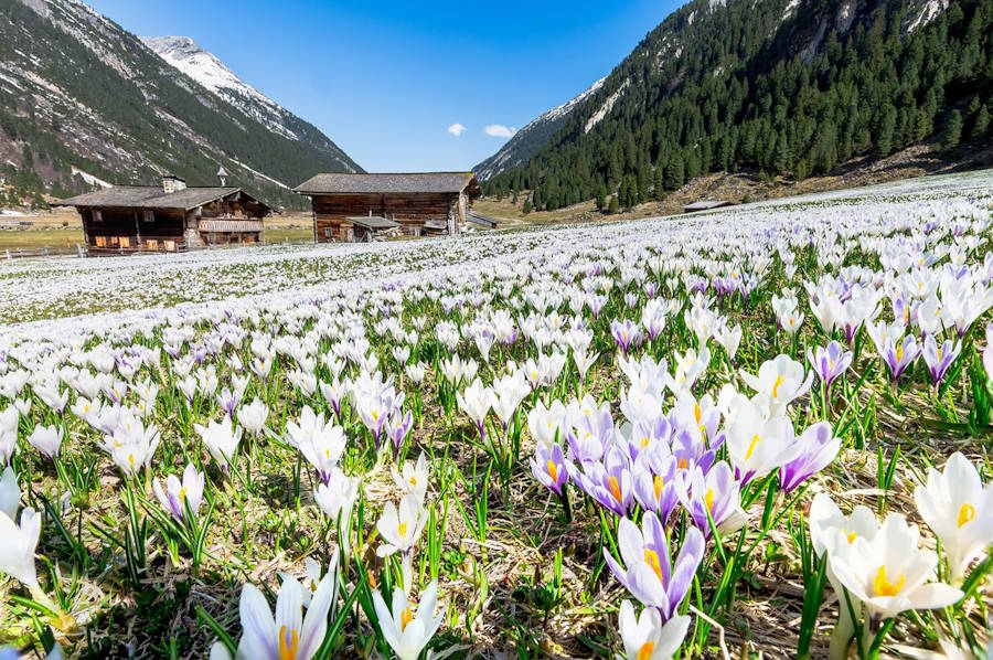 Ein lilafarbener Krokusblütenteppich verwandelt einmal pro Jahr das Stilluptal in ein Meer aus Farben © ZillertalArena