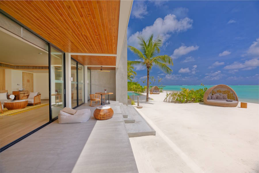Im Kuda Villingili Resort Maldives wird Design als Zusammenspiel von Architektur und Natur verstanden. Licht, Wind und Wasser sind dabei feste Bestandteile. Entwickelt und entworfen wurde das Resort vom lokalen Architekturbüro GX Associates in Zusammenarbeit mit den Interior-Designern von URBNarc mit Sitz in Singapur, und verbindet zeitgenössischen asiatischen Minimalismus mit maledivischen Einflüssen.