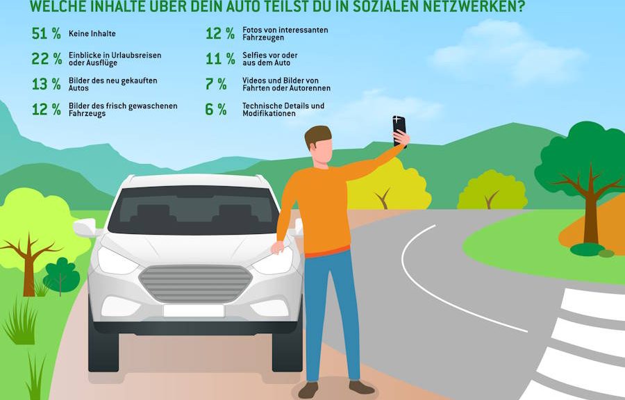 Fast jeder zweite Autofahrer (49 Prozent) postet Inhalte über sein Fahrzeug in den sozialen Netzwerken. [Bildquelle: Deutsche Tamoil GmbH] Missgeschicke im Straßenverkehr sind…