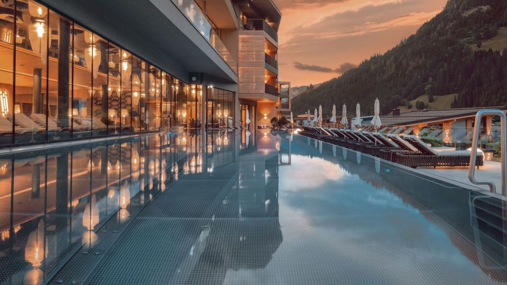 Outdoor-Pool im DAS EDELWEISS Salzburg Mountain Resort © Matthias Dengler Kulinarik, Wellness und Outdoor im Fokus DAS EDELWEISS Salzburg Mountain Resort setzt im…