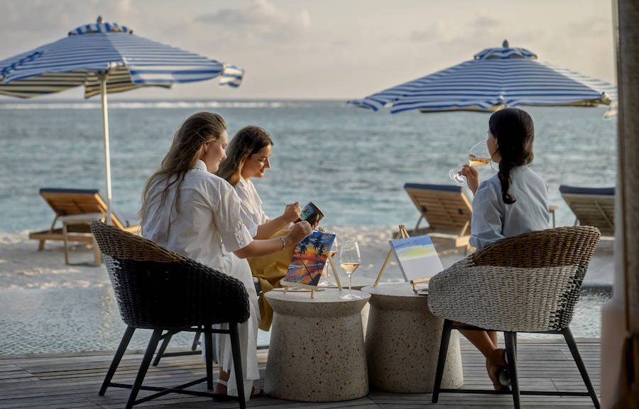 Kreative Auszeit beim Sip & Paint Event mit Rosé in der Bar La Vie © Le Meridien Maldives Resort & Spa Floating Breakfast,…