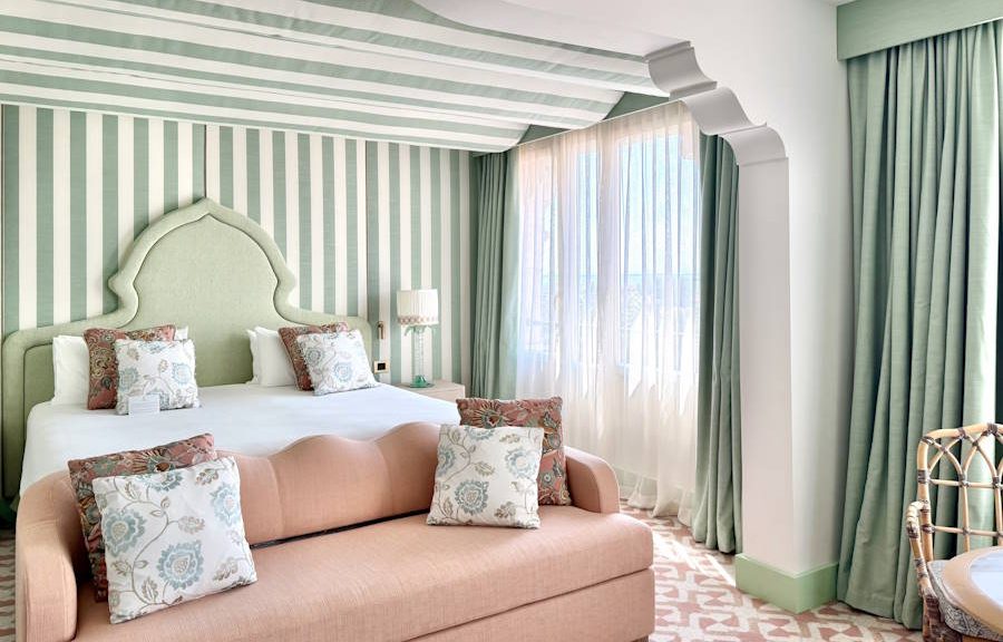 Inspiriert von venezianischen Gartenhöfen vereinen die Premium Venice View Zimmer Salbeigrün, Terrakotta und florale Akzente © Hotel Excelsior Venice Lido Resort Historisch inspirierte…